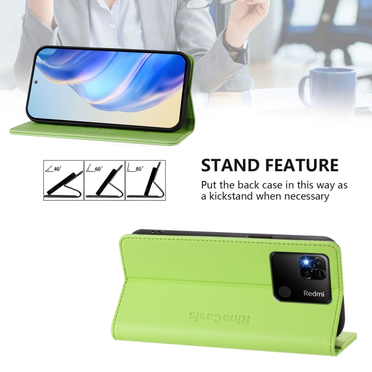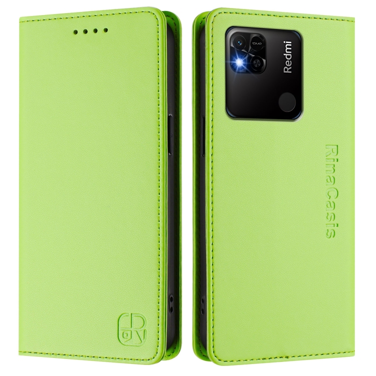 Funda de Cuero Rfid con Doble Pliegue y Succión Magnética para Redmi 10A/9C Rc01 (Verde Hierba)