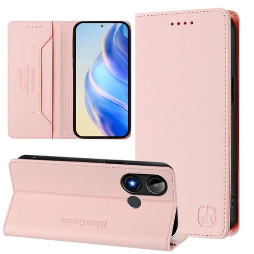 Funda de Cuero RFID con Doble Pliegue y Succión Magnética para Teléfono Blu C9 Rc01 (Rosa)