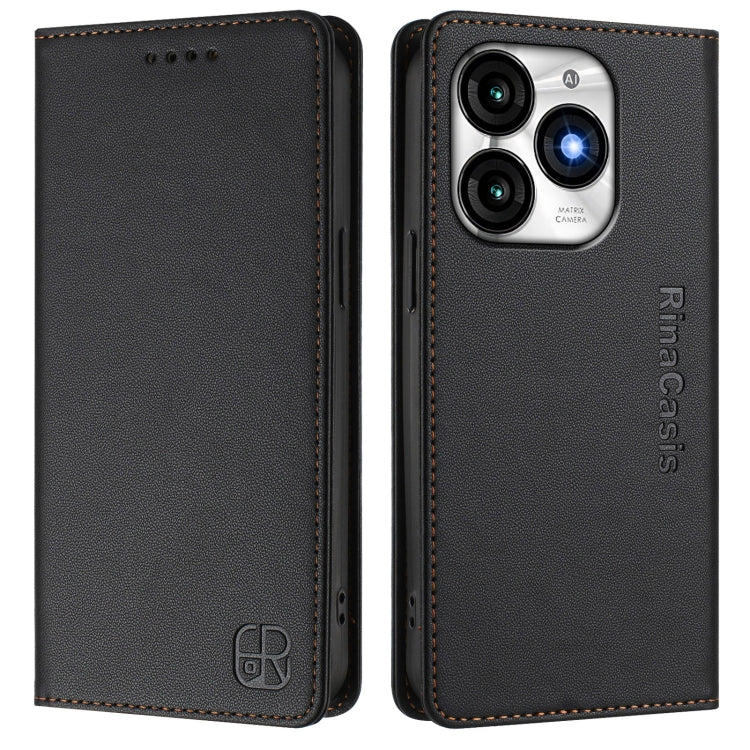 Funda de Cuero Rfid para Teléfono Itel A70 Rc01 con Doble Pliegue y Succión Magnética (Negra)