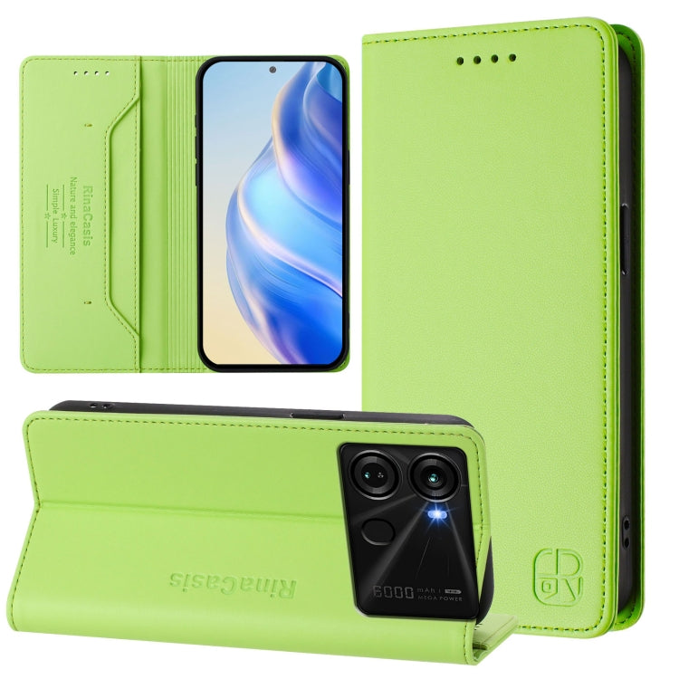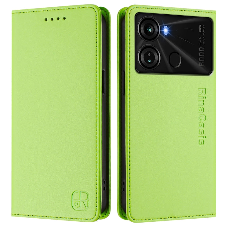 Funda de Cuero Rfid para Teléfono Itel P40 Rc01 con Doble Pliegue y Succión Magnética (Verde Hierba)