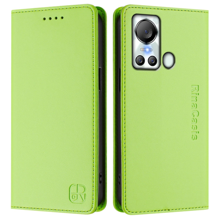 Funda de Cuero Rfid para Teléfono Itel S18/Vision 5 Rc01 con Doble Pliegue y Succión Magnética (Verde Hierba)