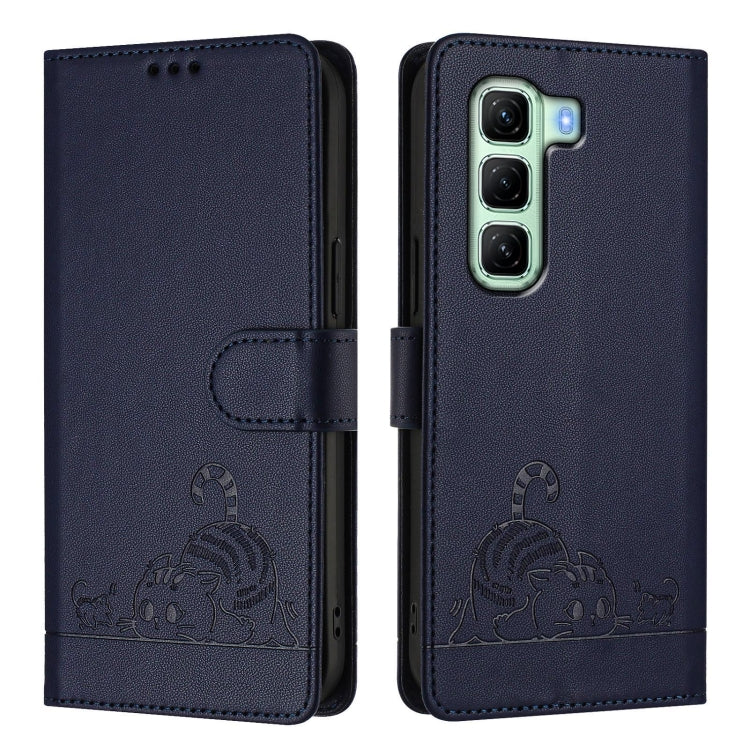 Funda de Cuero Rfid para Infinix Hot 50 4G con Estampado de Rata y Gato y Cordón (Azul)