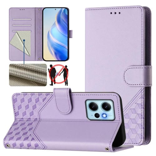 Funda de Cuero Rfid con Relieve de Panal Global para Redmi Note 12 4G (Morado Claro)
