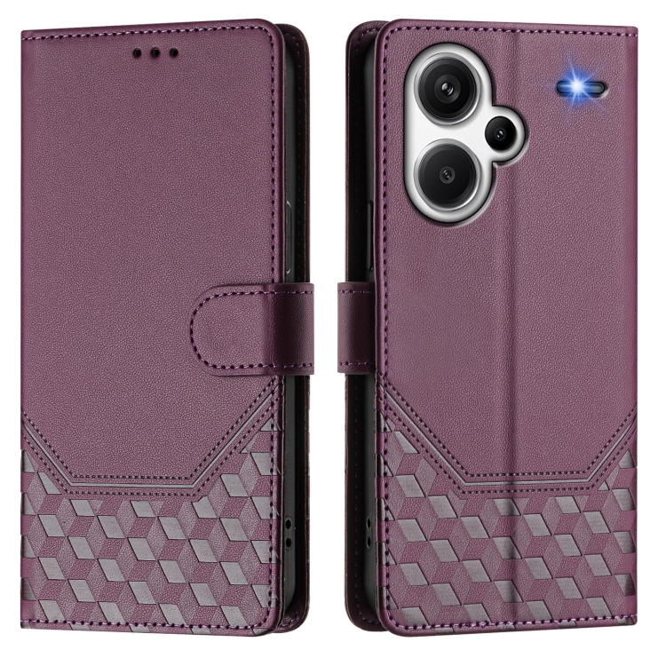 Funda de Cuero Rfid con Relieve de Panal Global para Redmi Note 13 Pro+ 5G (Violeta)