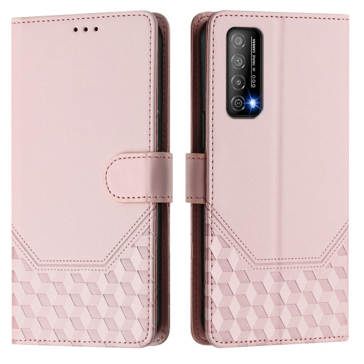 Funda de Cuero Rfid con Relieve de Panal para Huawei Enjoy 20 Se/P Smart 2021 (Rosa)