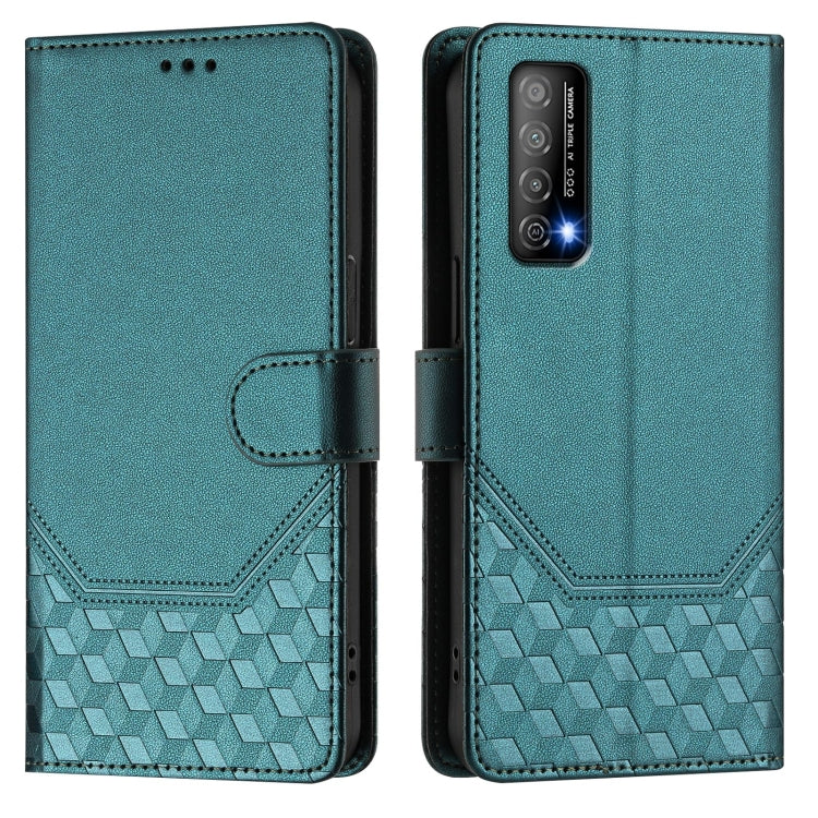Funda de Cuero RFID con Relieve de Panal para Huawei Enjoy 20 SE/P Smart 2021 (Verde Pavo Real)