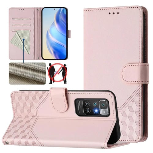 Funda de Cuero Rfid con Relieve de Panal para Redmi 10 2022/2021 (Rosa)