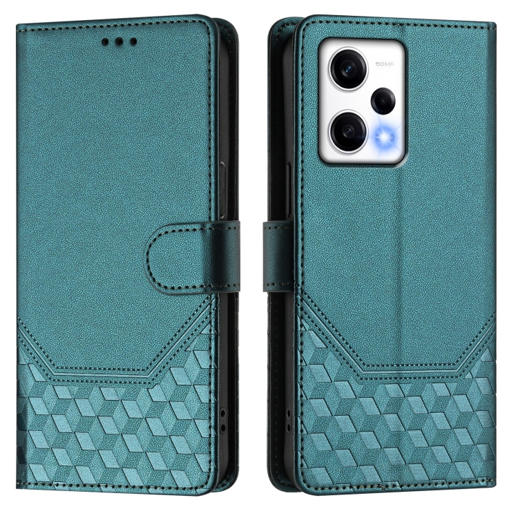 Funda de Cuero Rfid con Relieve de Panal para Redmi Note 12 Pro Speed / 12 Pro 5G (Verde Pavo Real)
