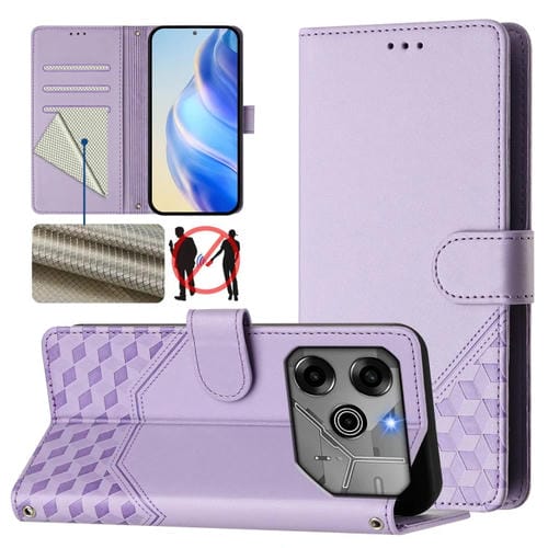 Funda de Cuero Rfid con Relieve de Panal para Tecno Pova 6 5G y 6 Pro 5G (Morado Claro)
