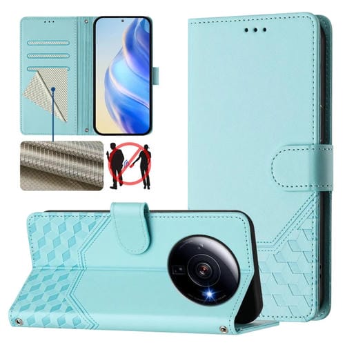 Funda de Cuero Rfid con Relieve de Panal para Xiaomi 12S Ultra (Verde Menta)