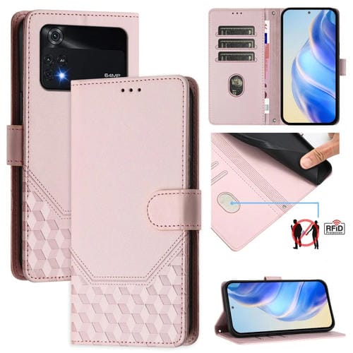Funda de Cuero Rfid con Relieve de Panal para Xiaomi Poco M4 Pro 4G (Rosa)