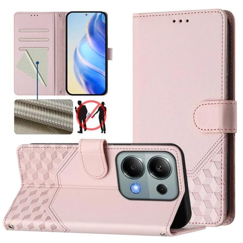 Funda de Cuero Rfid con Relieve de Panal para Xiaomi Poco M6 Pro 4G (Rosa)