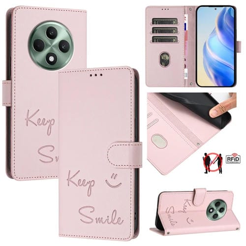 Funda de Cuero Rfid con Relieve de Sonrisa Global para Oppo Reno12 F 5G (Rosa)
