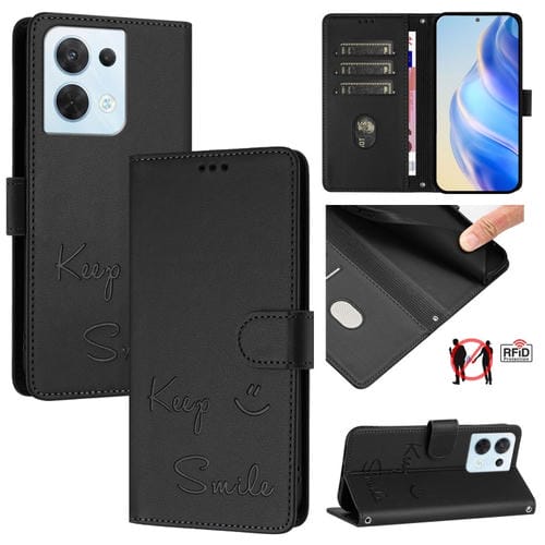 Funda de Cuero Rfid con Relieve de Sonrisa Global para Oppo Reno8 5G (Negra)