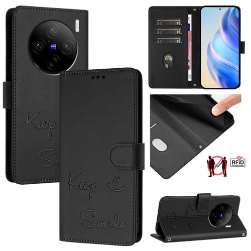 Funda de Cuero Rfid con Relieve de Sonrisa para Vivo X100 Pro 5G (Negra)