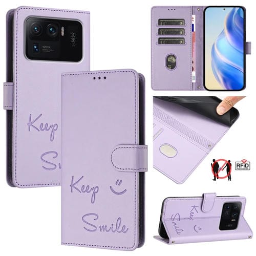 Funda de Cuero Rfid con Relieve de Sonrisa para Xiaomi Mi 11 Ultra (Morado Claro)