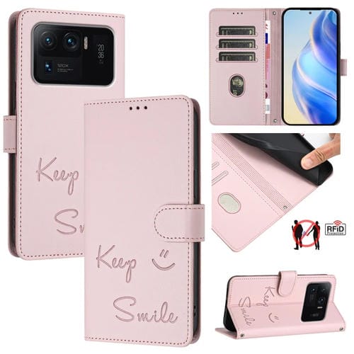Funda de Cuero Rfid con Relieve de Sonrisa para Xiaomi Mi 11 Ultra (Rosa)