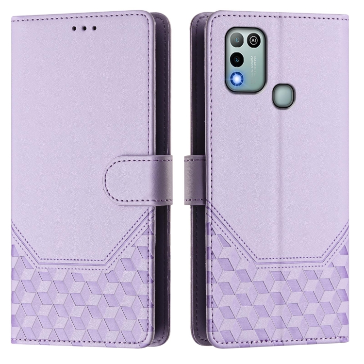 Funda de Cuero Rfid con Relieve en Panal para Infinix Hot 10 Play y Hot 11 Play (Morado Claro)