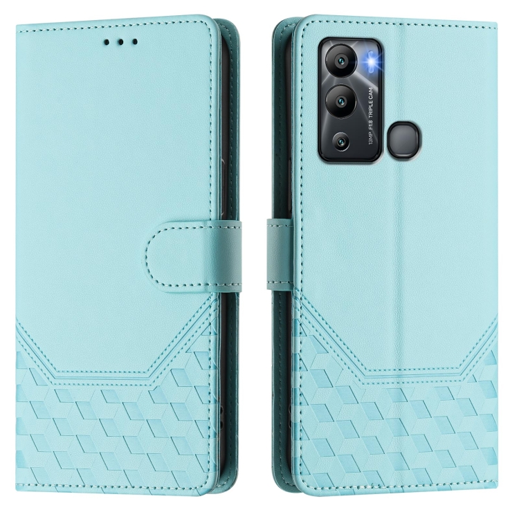Funda de Cuero RFID con Relieve en Panal para Infinix Hot 12I y Hot 20I (Verde Menta)
