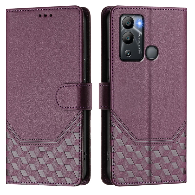 Funda de Cuero Rfid para Infinix Hot 12I/Hot 20I con Relieve en Panal (Violeta)