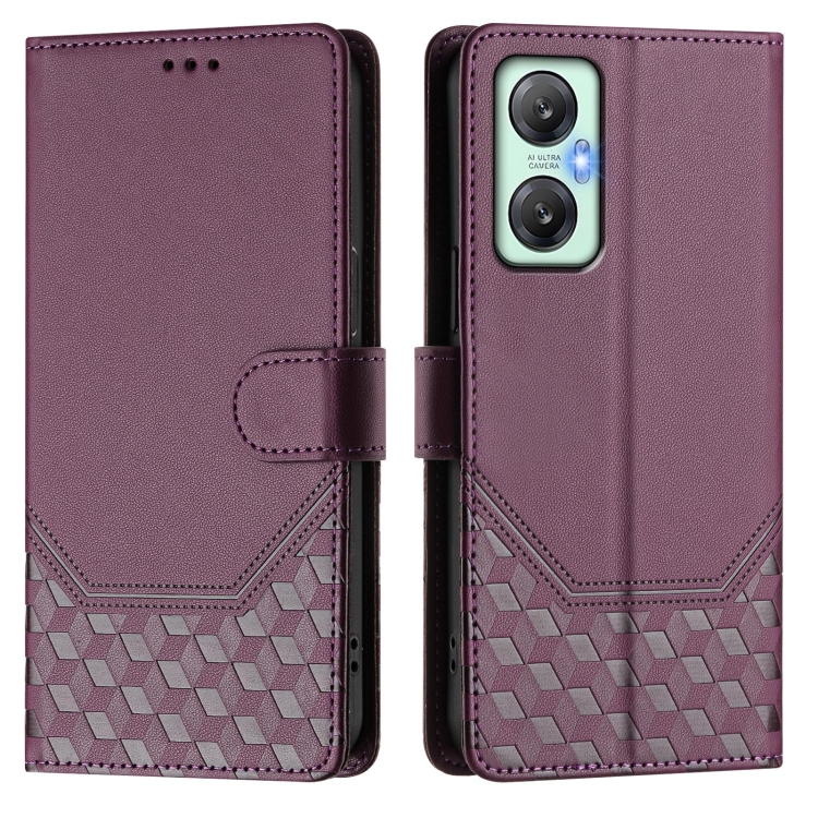 Funda de Cuero Rfid con Relieve en Panal para Infinix Hot 20 5G (Violeta)