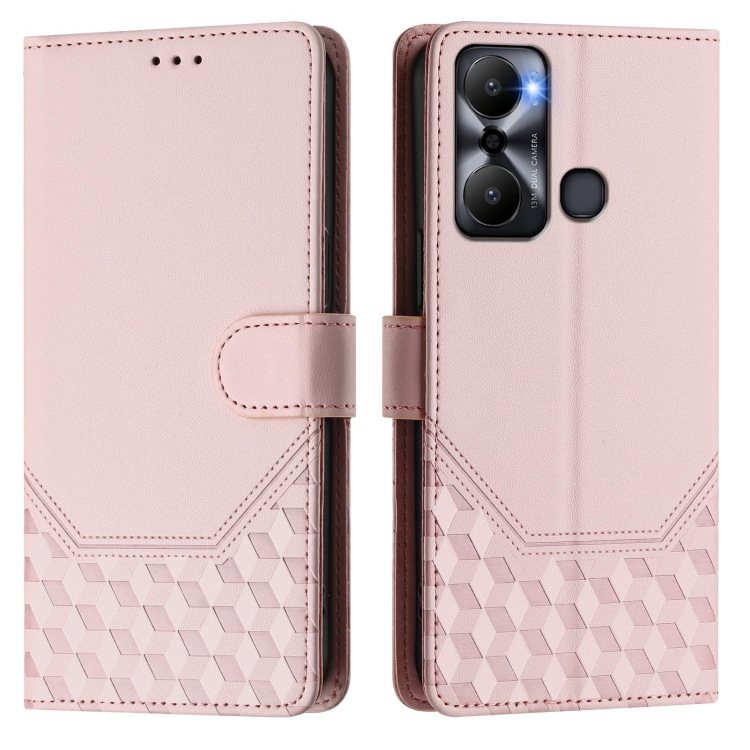 Funda de Cuero Rfid con Relieve en Panal para Infinix Hot 20 Play (Rosa)