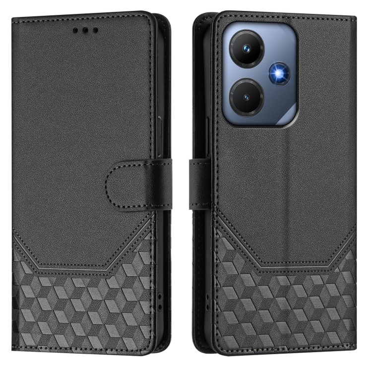 Funda de Cuero Rfid con Relieve en Panal para Infinix Hot 30I (Negra)