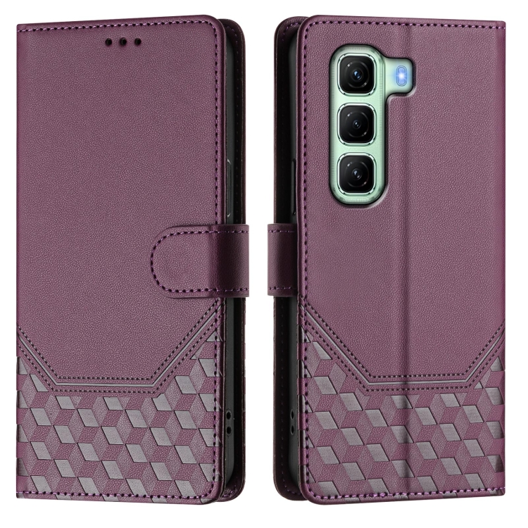 Funda de Cuero Rfid con Relieve en Panal para Infinix Hot 50 5G (Violeta)