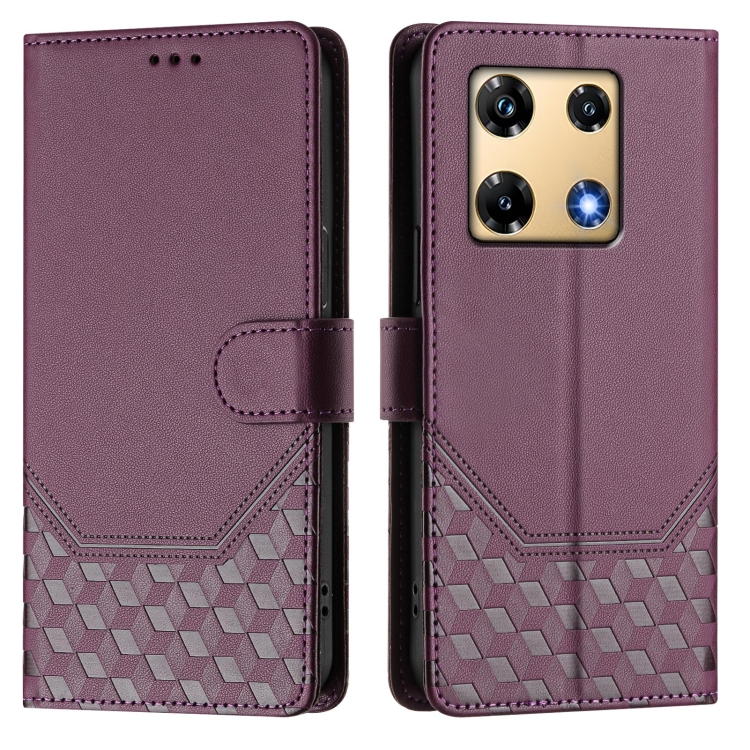 Funda de Cuero Rfid con Relieve en Panal para Infinix Note 30 Pro 4G (Violeta)