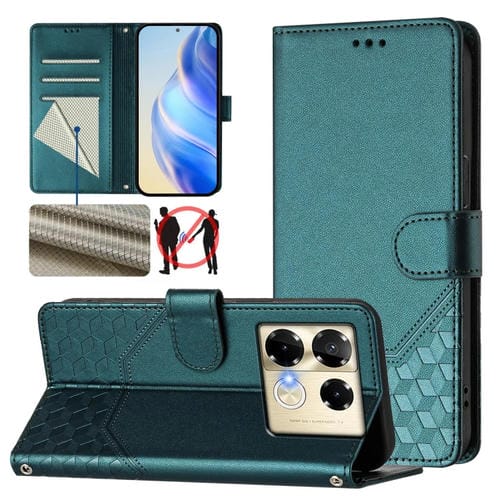 Funda de Cuero Rfid con Relieve en Panal para Infinix Note 40 Pro+ 5G (Verde Pavo Real)