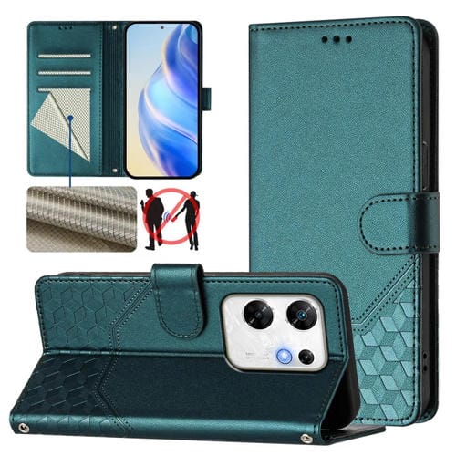 Funda de Cuero Rfid con Relieve en Panal para Infinix Zero 30 4G (Verde Pavo Real)