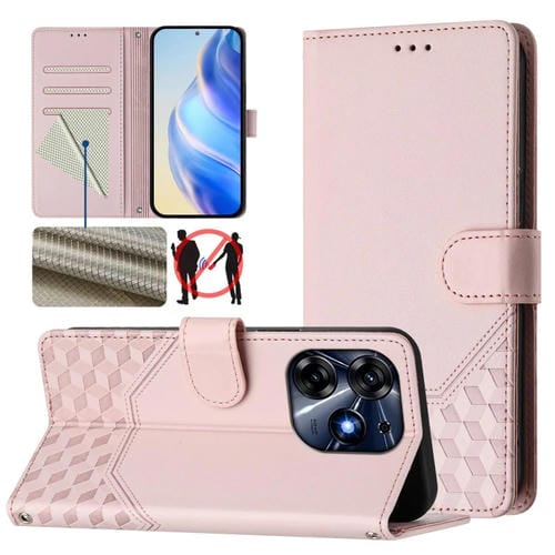 Funda de Cuero Rfid con Relieve en Panal para Tecno Spark 10 Pro 4G (Rosa)