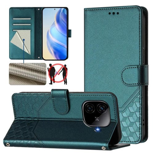 Funda de Cuero Rfid con Relieve En Panal para Vivo Iqoo Z9/Z9 Turbo (Verde Pavo Real)