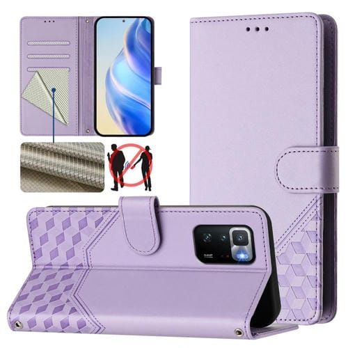 Funda de Cuero Rfid con Relieve En Panal para Xiaomi Poco X3 Gt (Morado Claro)