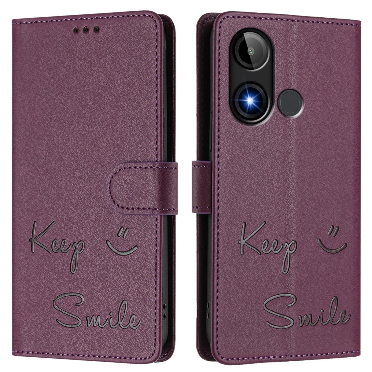 Funda Cuero RFID con Relieve Smile para Teléfono Blu C9 (Violeta)