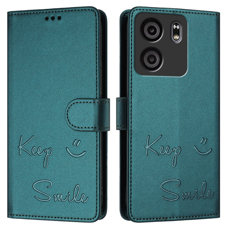 Funda cuero RFID con relieve Smile para Blu View 5 (Verde Pavo Real)
