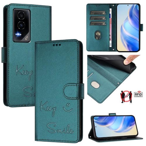 Funda de Cuero Rfid con Relieve Smile para Teléfono For Honor Gt (Verde Pavo Real)