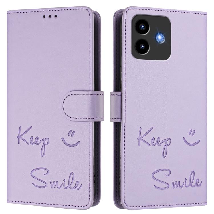 Funda de Cuero Rfid con Relieve Sonriente para Cubot Note 40 (Morado Claro)