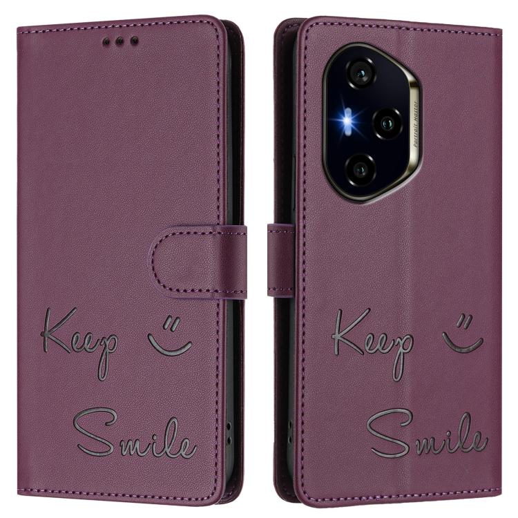 Funda de Cuero Rfid con Relieve Sonriente para Honor 300 Pro 5G/300 Ultra 5G (Violeta)