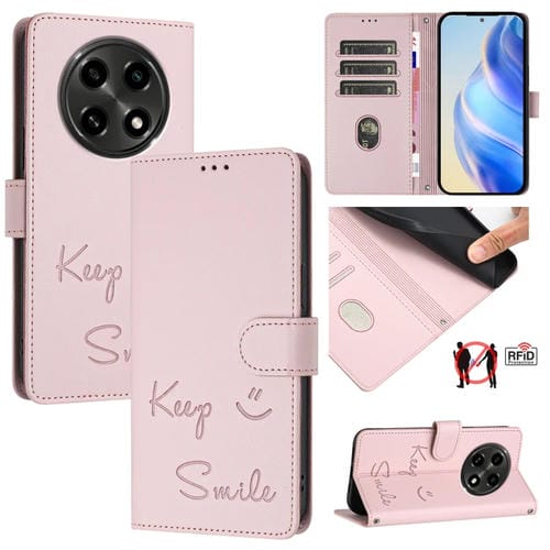 Funda de Cuero Rfid con Relieve Sonriente para Oppo A2 Pro 5G (Rosa)
