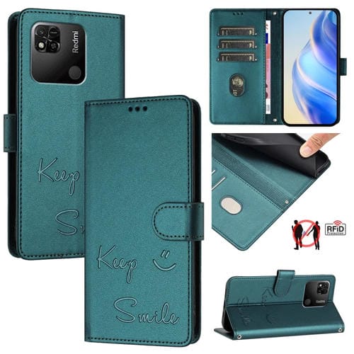Funda de Cuero Rfid con Relieve Sonriente para Redmi 10A/9C (Verde Pavo Real)