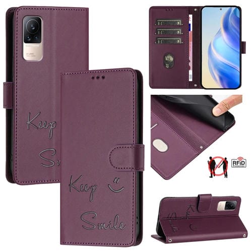 Funda de Cuero Rfid con Relieve Sonriente para Xiaomi Civi 1S (Violeta)