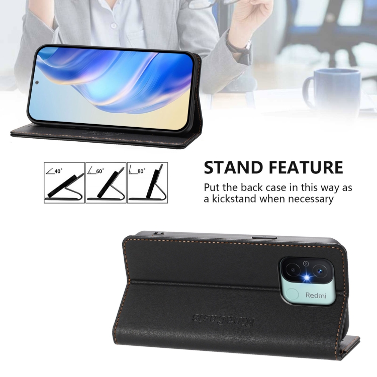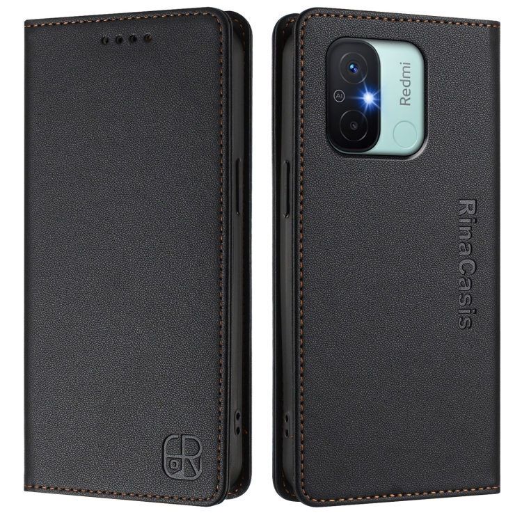Funda de Cuero Rfid con Succión Magnética y Doble Pliegue para Redmi 12C/11A Rc01 (Negra)