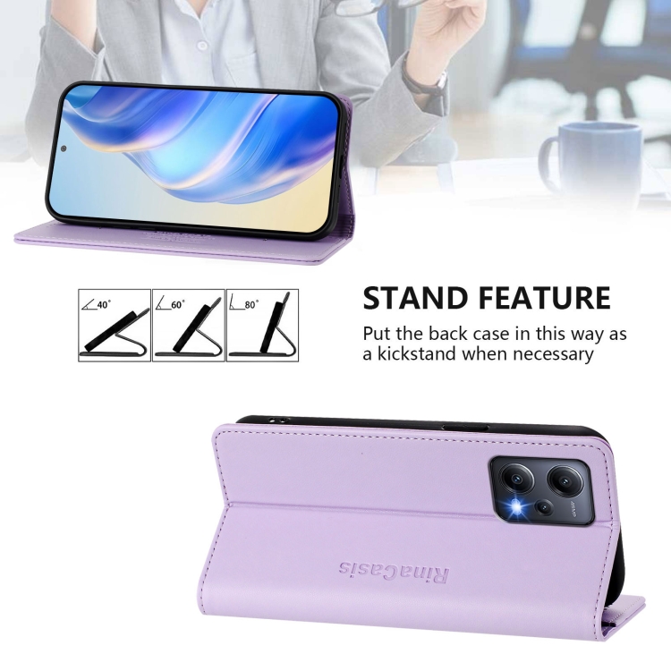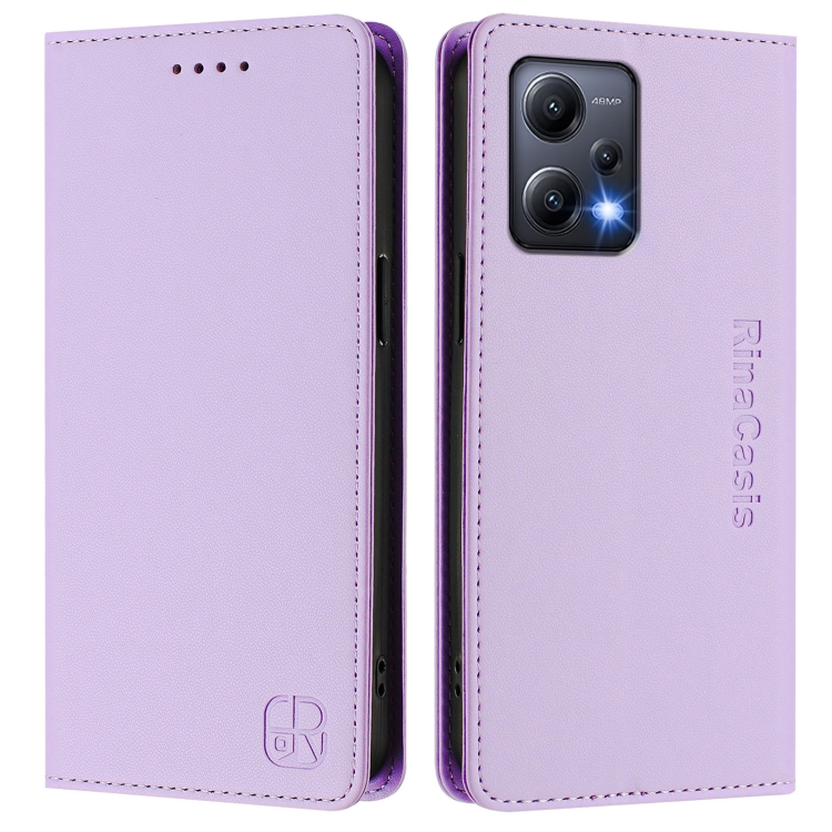 Funda de Cuero Rfid con Succión Magnética y Doble Pliegue para Redmi Note 12 5G India/Xiaomi Poco X5 Rc01 (Morado Claro)