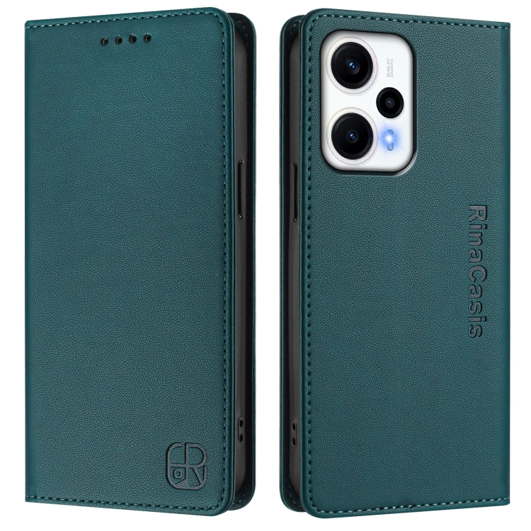 Funda de Cuero Rfid con Succión Magnética y Doble Pliegue para Redmi Note 12 Turbo 5G/Xiaomi Poco F5 Rc01 (Verde Oscuro)