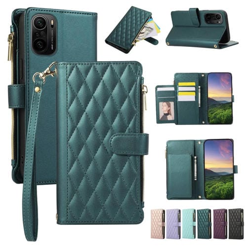 Funda de Cuero Tipo Billetera con Cremallera Rombal para Redmi K40 (Verde)