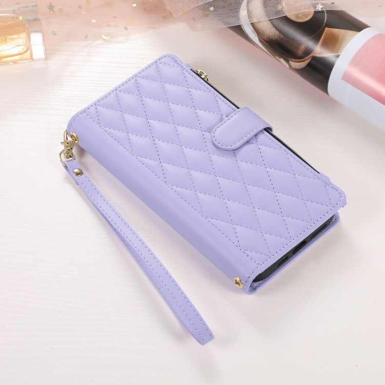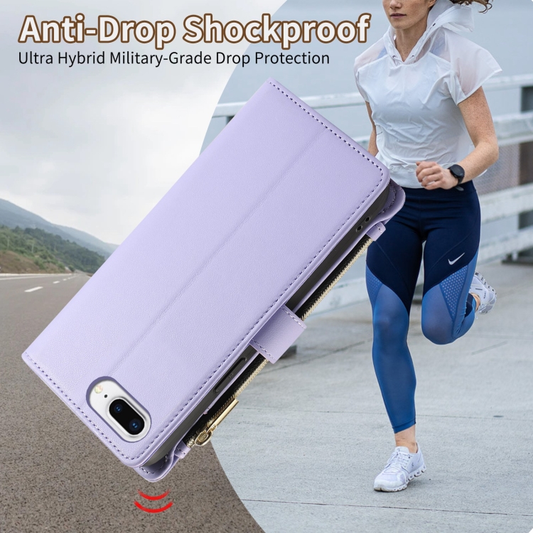 Funda de Cuero Tipo Billetera con Cremallera y Diseño Rombal para iPhone 7 Plus/8 Plus (Morado)