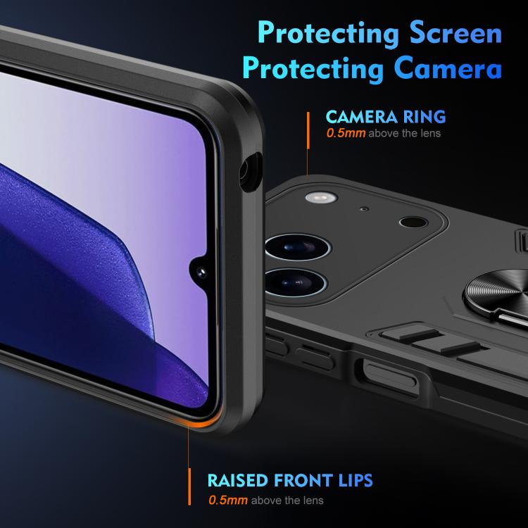 Funda de metal con anillo a prueba de golpes para iPhone 17 Pro (negra)