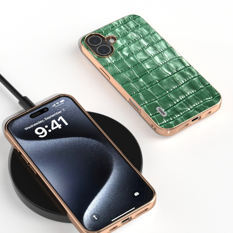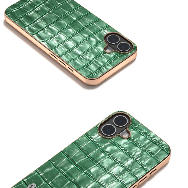 Funda para iPhone 16 Abeel Piel Auténtica Textura de Cocodrilo Marco Galvanizado (Verde)