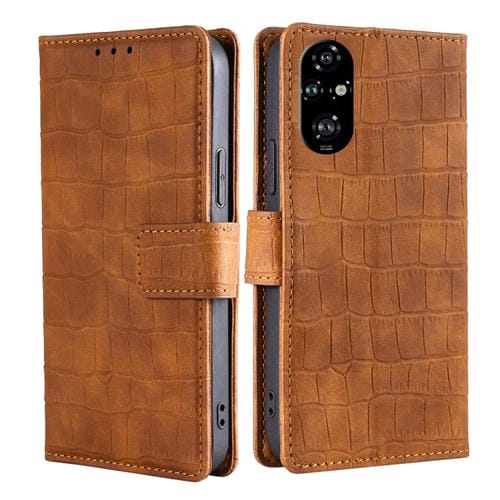 Funda de Piel con Cierre Magnético para Honor 200 Pro 5G (Marrón) Diseño Cocodrilo